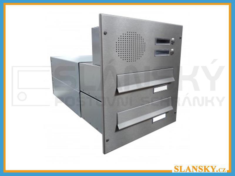 - 2x poštovní schránka B-042 rovná k zazdění do sloupku + čelní deska s 2x zvonkem a HM URMET - NEREZ