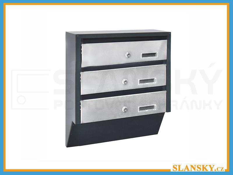 KSM39 – 3x Úkosová poštovní schránka RAL 7016 / Nerez