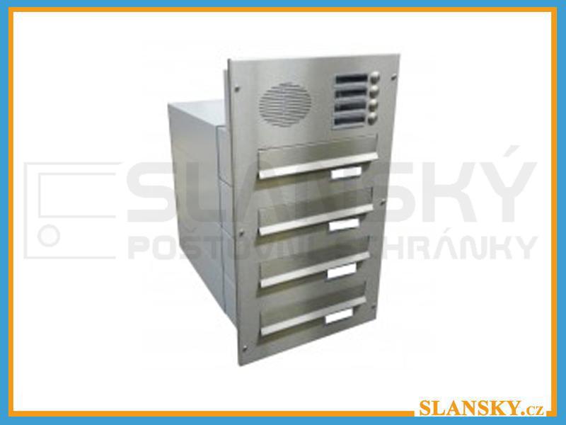 - 4x poštovní schránka B-042 rovná k zazdění do sloupku + čelní deska s 4x zvonkem a HM URMET - NEREZ