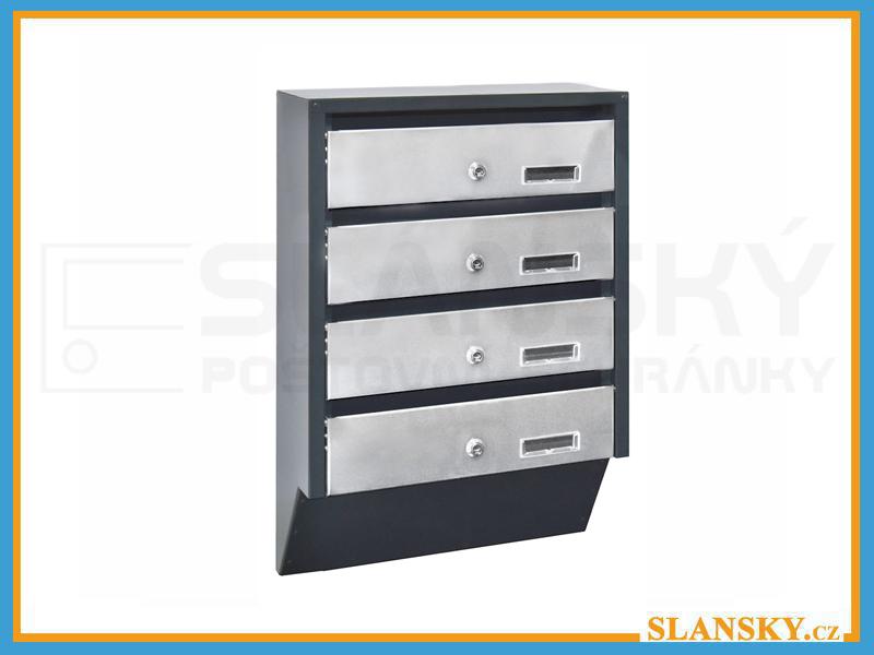 KSM39 – 4x Úkosová poštovní schránka RAL 7016 / Nerez