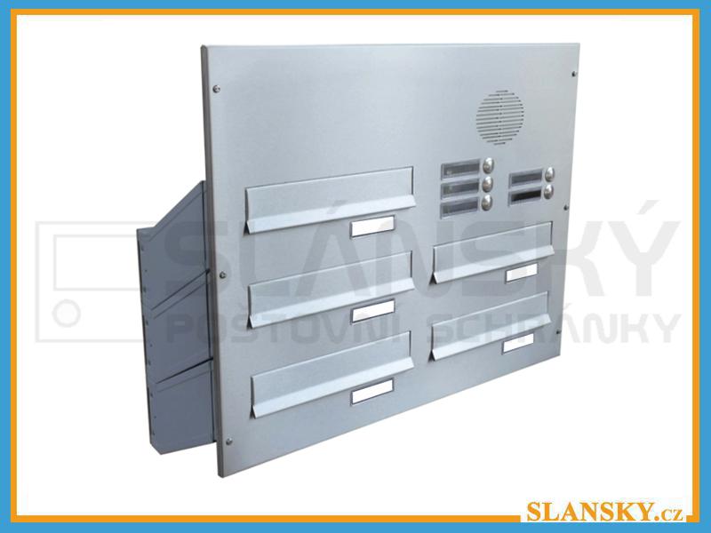 - 5x poštovní schránka D-041 šikmá k zazdění do sloupku + čelní deska s 5x zvonkem a HM URMET - NEREZ
