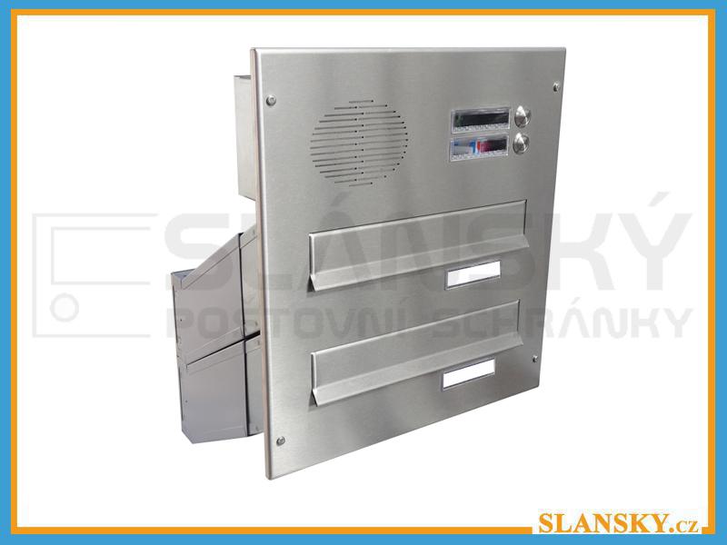 2x poštovní schránka D-041 šikmá k zazdění do sloupku + čelní deska s 2x zvonkem a HM URMET - NEREZ
