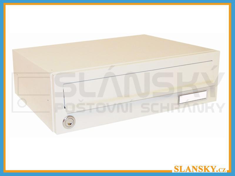 - Ležatá poštovní schránka s hliníkovou vhozovou sklapkou.