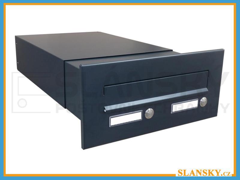 Poštovní schránka B-042 rovná k zazdění do sloupku + čelní deska s 2x zvonkem ČD-3 - RAL 7016 (antracit)