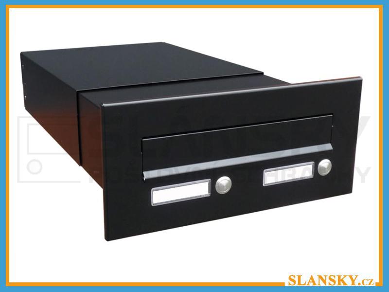 Poštovní schránka B-042 rovná k zazdění do sloupku + čelní deska s 2x zvonkem ČD-3 - RAL 9005 (černá)