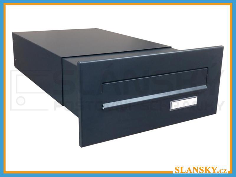 Poštovní schránka B-042 rovná k zazdění do sloupku + čelní deska se jmenovkou ČD-1 - RAL 7016 (antracit)