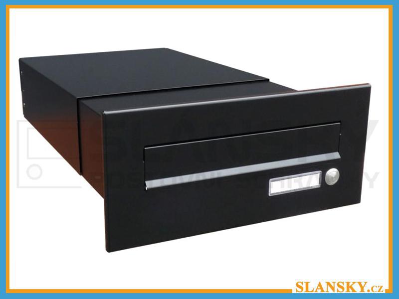 Poštovní schránka B-042 rovná k zazdění do sloupku + čelní deska se zvonkem ČD-2 - RAL 9005 (černá)