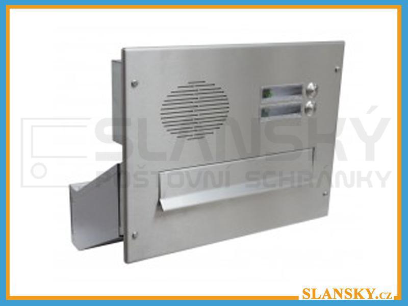 - Poštovní schránka D-041 šikmá k zazdění do sloupku + čelní deska s 2x zvonkem a HM URMET - NEREZ