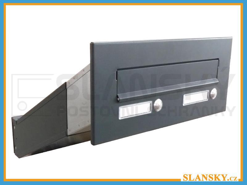 Poštovní schránka D-042 šikmá k zazdění do sloupku + čelní deska s 2x zvonkem ČD-3 - RAL 7016 (antracit)