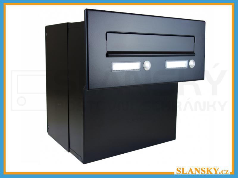 - Poštovní schránka F-042 k zazdění do sloupku + čelní deska s 2x zvonkem ČD-3 - RAL 9005
