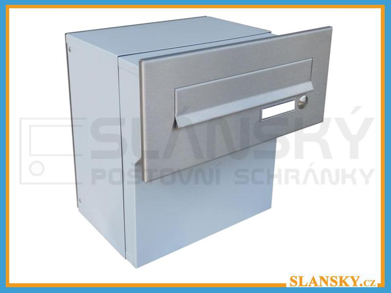 Poštovní schránka F-042 k zazdění do sloupku + čelní deska se zvonkem ČD-2 – NEREZ