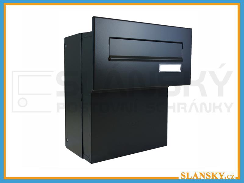 Poštovní schránka F-046 do sloupku + čelní deska se jmenovkou ČD-16 – RAL 9005 (matná černá)