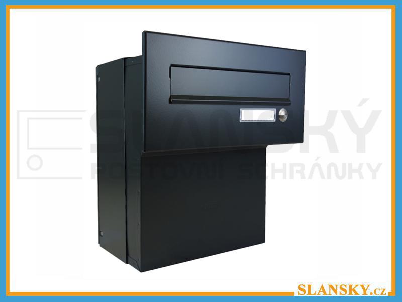Poštovní schránka F-046 do sloupku + čelní deska se zvonkem ČD-26 – RAL 9005 (matná černá)