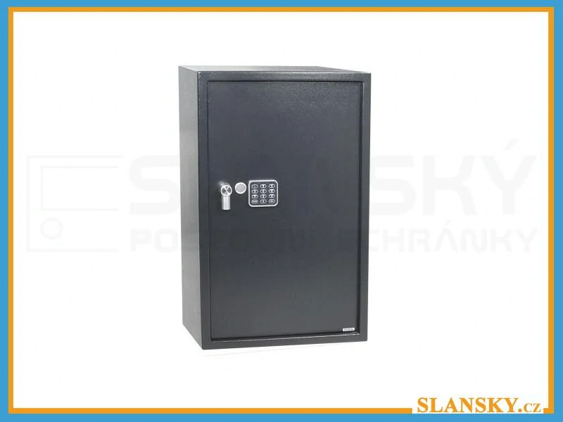 Tento ocelový sejf s elektronickým zámkem kombinuje vysokou úroveň ochrany s prostorným vnitřním objemem 133 litrů. Umožňuje uložení až 10 šanonů nebo dalších cenností, dokumentů a předmětů. Elektronický zámek s číselnou klávesnicí umožňuje nastavení uživatelského kódu v délce 3–8 číslic, což nabízí až 100 000 000 kombinací kódů. Funkce časové blokace po třech nesprávných pokusech a indikace nízkého stavu baterie zajišťují bezpečnost i uživatelský komfort. Robustní ocelová konstrukce a možnost ukotvení do zdi nebo podlahy poskytují spolehlivou ochranu před neoprávněným přístupem.
